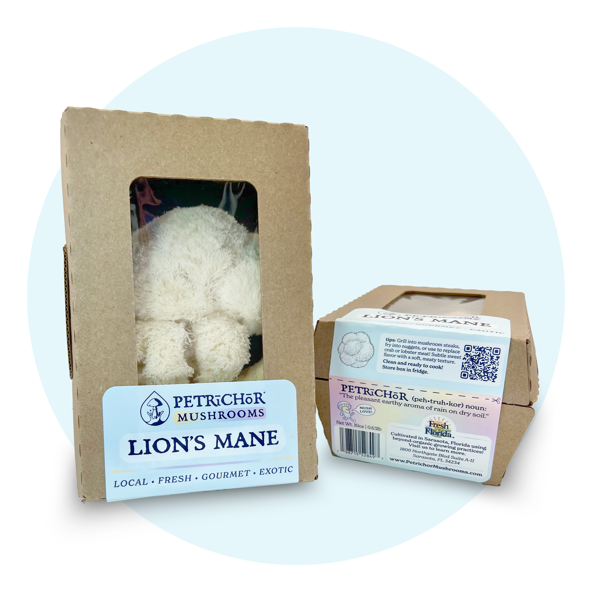 Petrichor Mushrooms is a Florida-based brand that cultivates and sells gourmet and functional mushrooms. They grow a variety of mushrooms, such as oyster, lion's mane, and chestnut, in a controlled environment and are known for their high-quality, culinary, and medicinal products, including unique varieties like the black pearl and pink flamingo oysters. We carry their line of functional "Petrichor Lightning" beverages and extracts in our market!